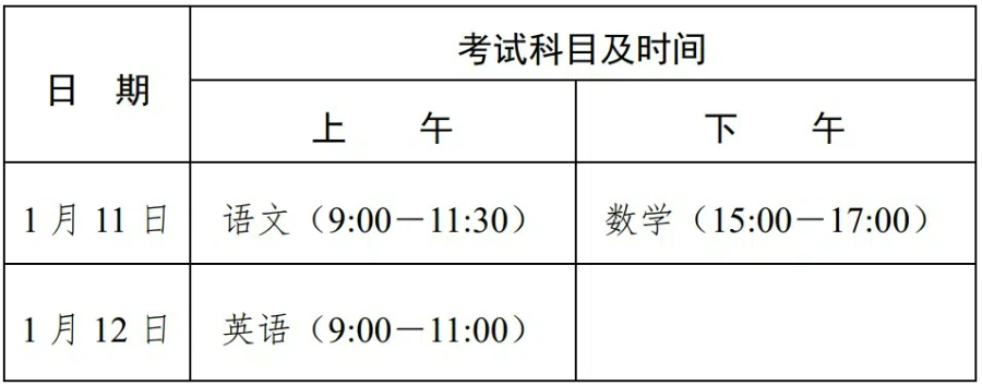考试科目及时间表