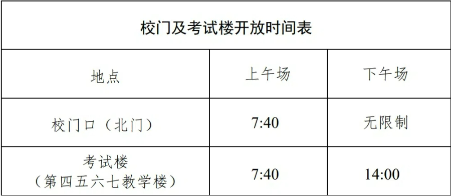 校门及考试楼开放时间表